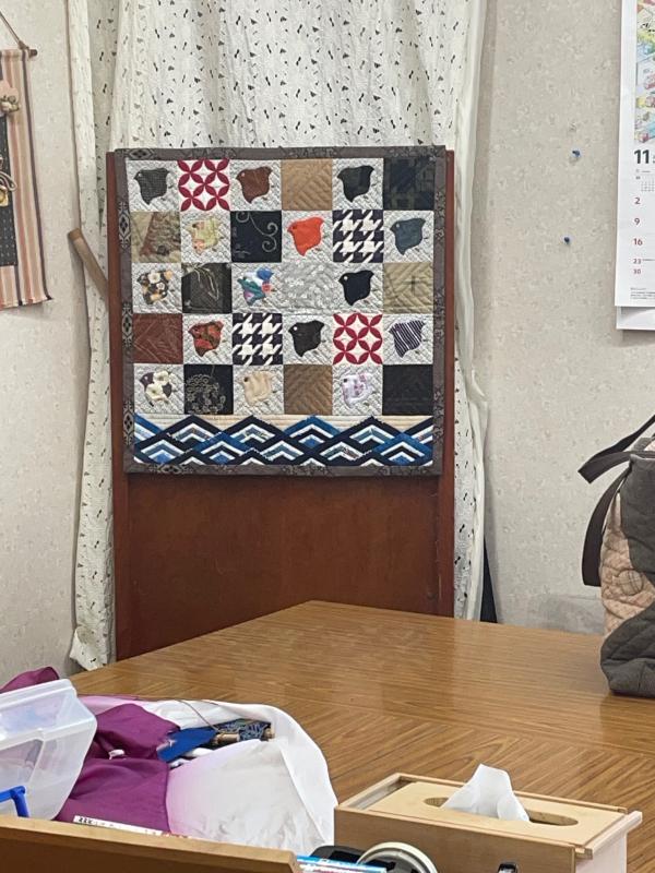細かいパッチワークのタペストリーが完成しました。 |