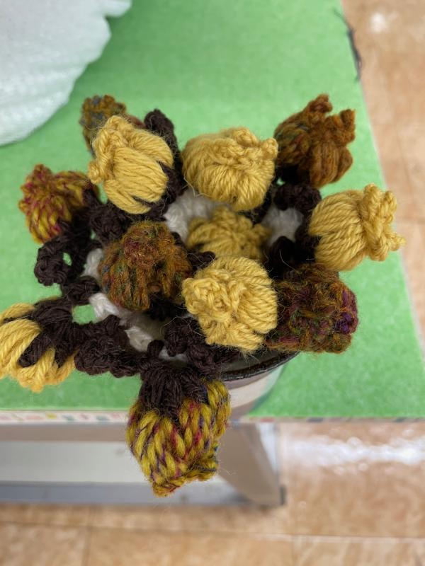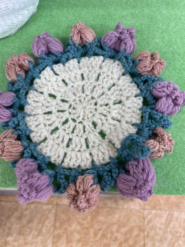 今年の編物の流行です。 お花のブーケコースター |