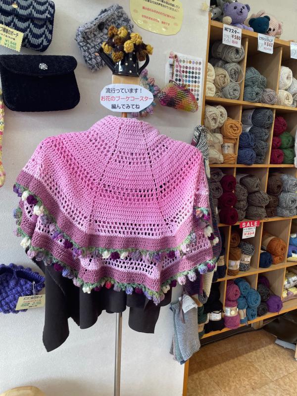 毛糸はブーケショールが流行っています。 編み図用意しています。 |