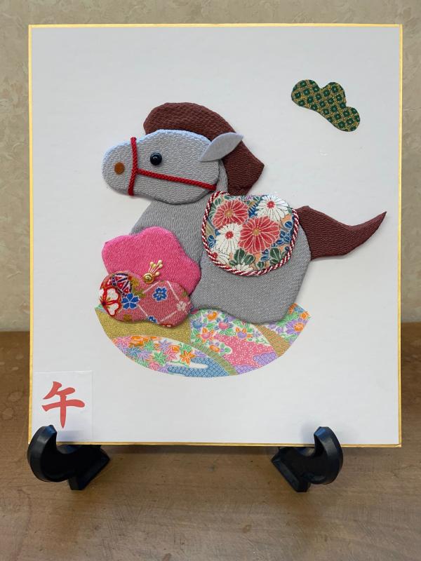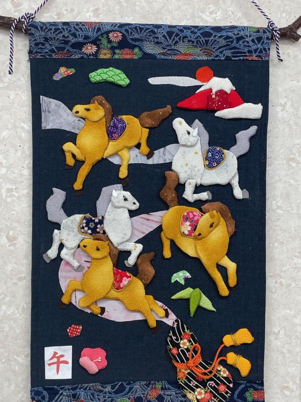 こちらは馬が遊ぶタペストリーです。 ハンドメイド教室で講習致します。 |